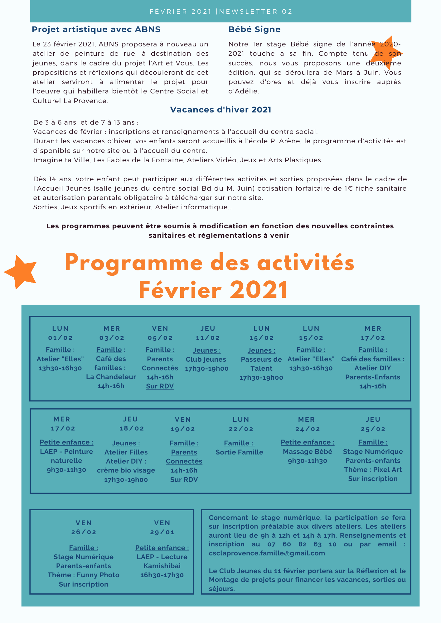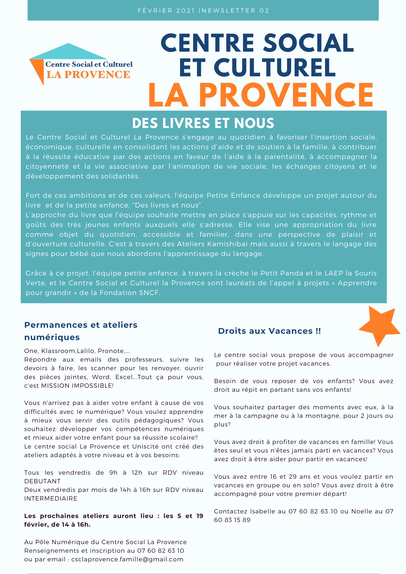 Merci de vous être abonné à la lettre d'information du Centre Social et Culturel La Provence.